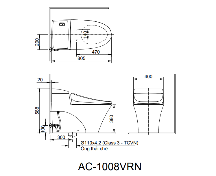 Bàn Cầu 1 Khối INAX AC-1008VRN