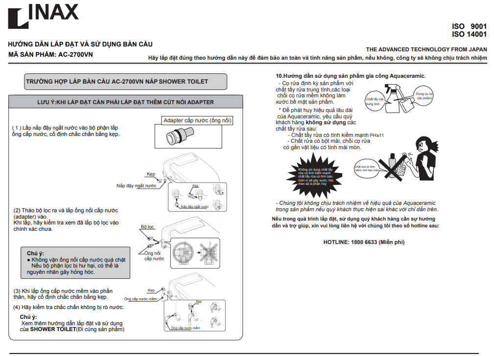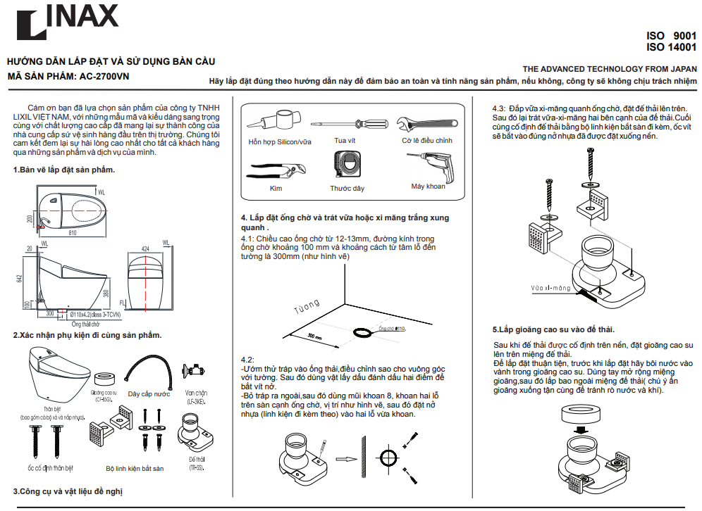 - Đã bao gồm van chặn nước LF-3VK, đế thải nước TR-SS