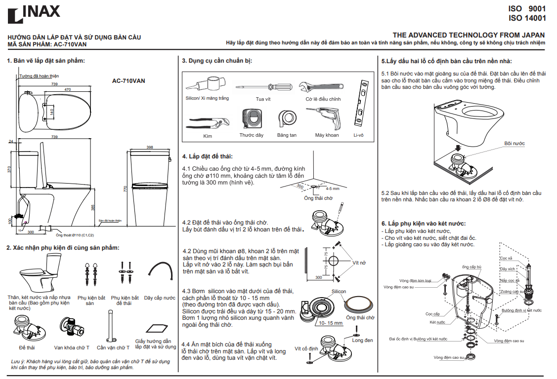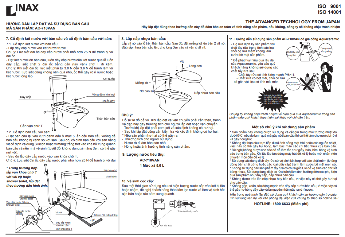 AC-710VAN Bàn Cầu INAX 2 Khối (Aqua Ceramic)