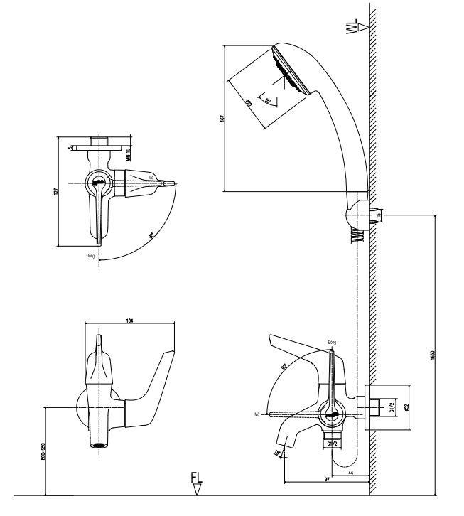- Sen tắm nước lạnh, có vòi xả xô