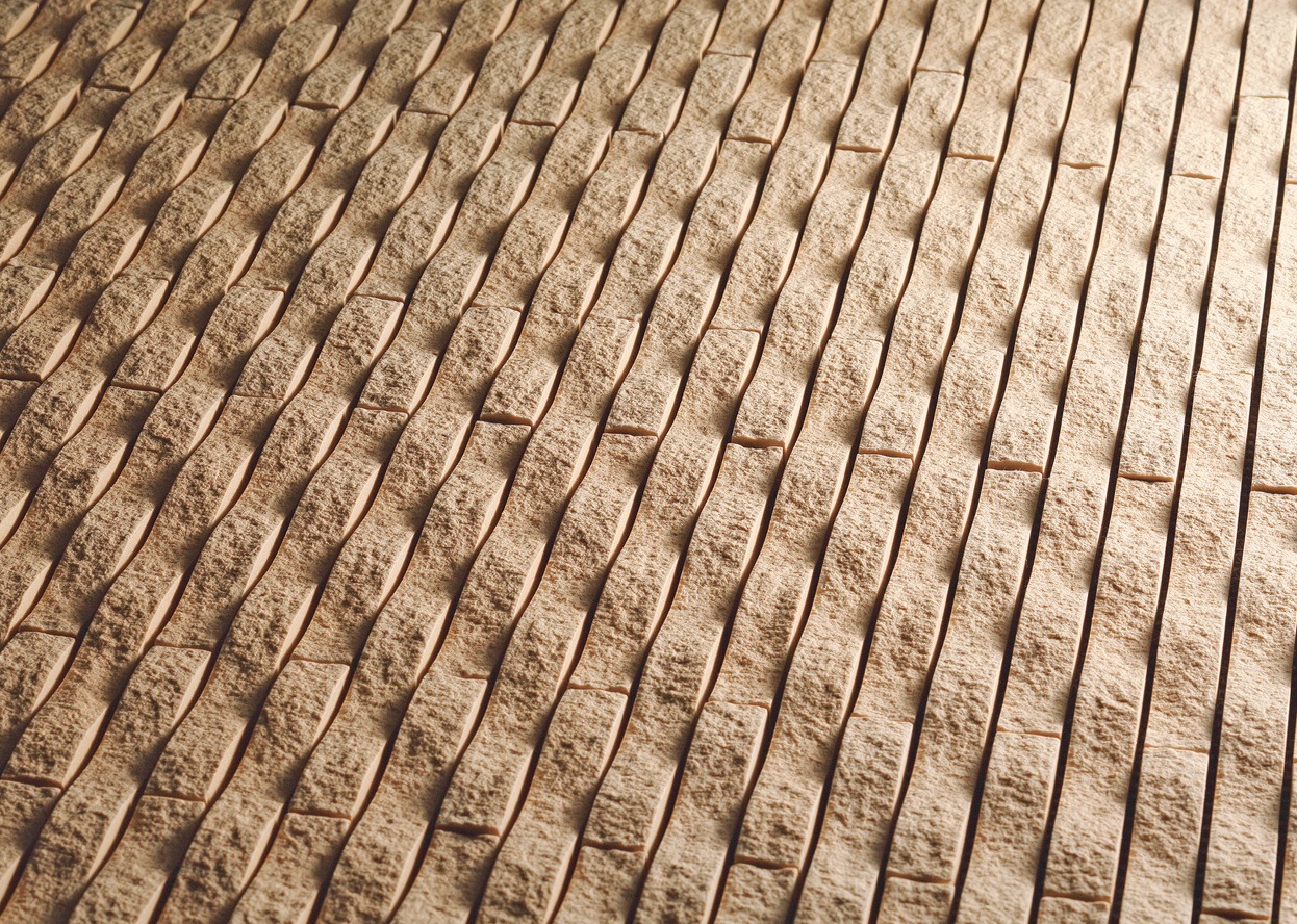 WAVE BORDER DCF-20B/NET/WAB-4 - Ánh sáng dường như đang chơi trồn tìm, lấp ló trên bề mặt lượn sóng của gạch, tạo không gian lịch lãm và sang trọng.