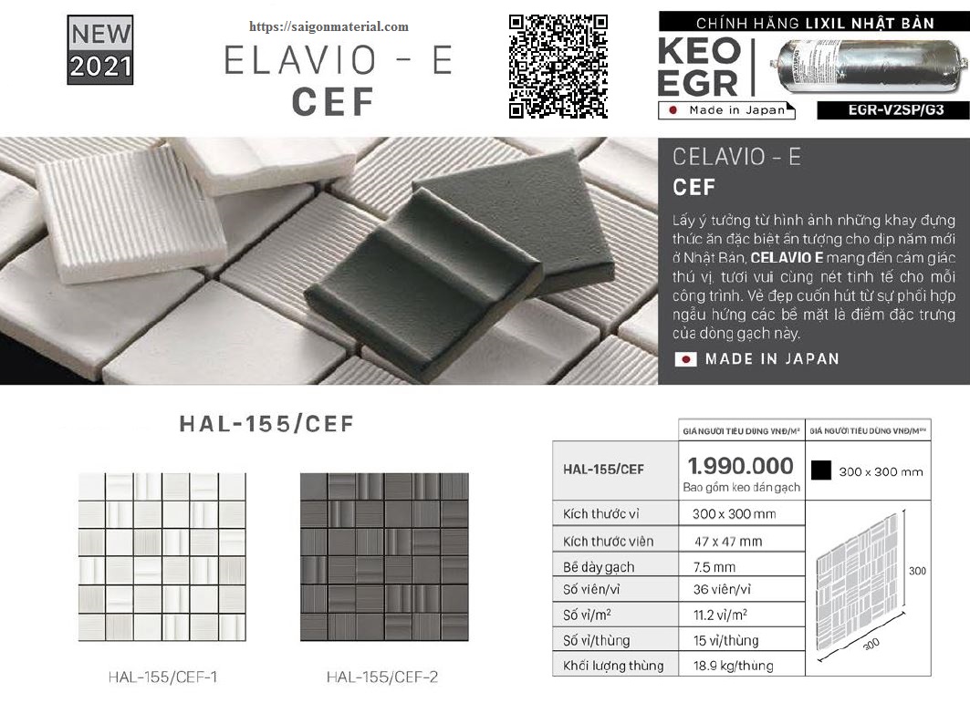 Báo giá gạch Inax CEF CELAVIO E HAL-155/CEF-1 vui lòng liên hệ hotline: 0938789929 để được hỗ trợ tốt nhất.