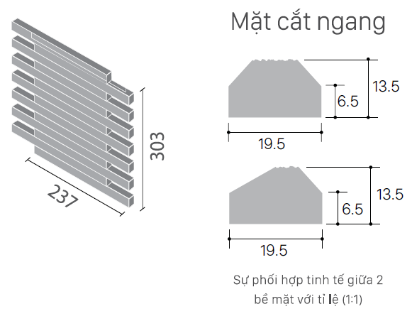 | Kích thước viên gạch: | 135mm x 19.5mm | |