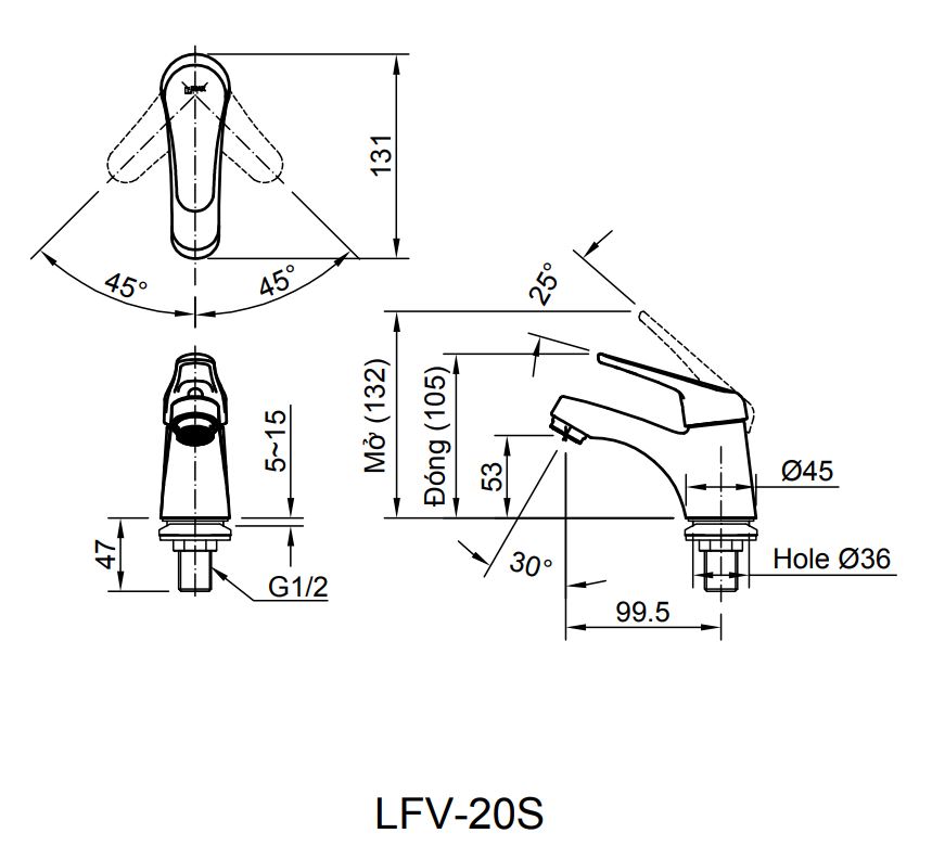 - Vòi chậu nước lạnh dành cho chậu 1 lỗ